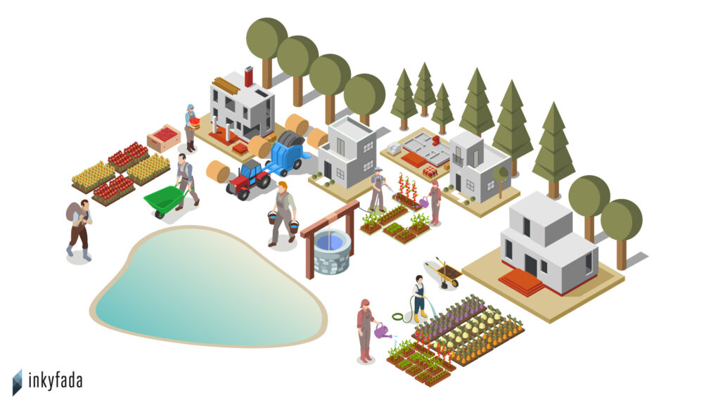ينخرط أهالي القرية من خلال الحوار والتنسيق والتنظيم الذاتي في ما نسميه الحوكمة النِّدِّيّة، وهو نوع من أنواع الحوكمة مكّن العديد من المجتمعات على مر التاريخ وفي جميع أنحاء العالم من تلبية احتياجاتها.